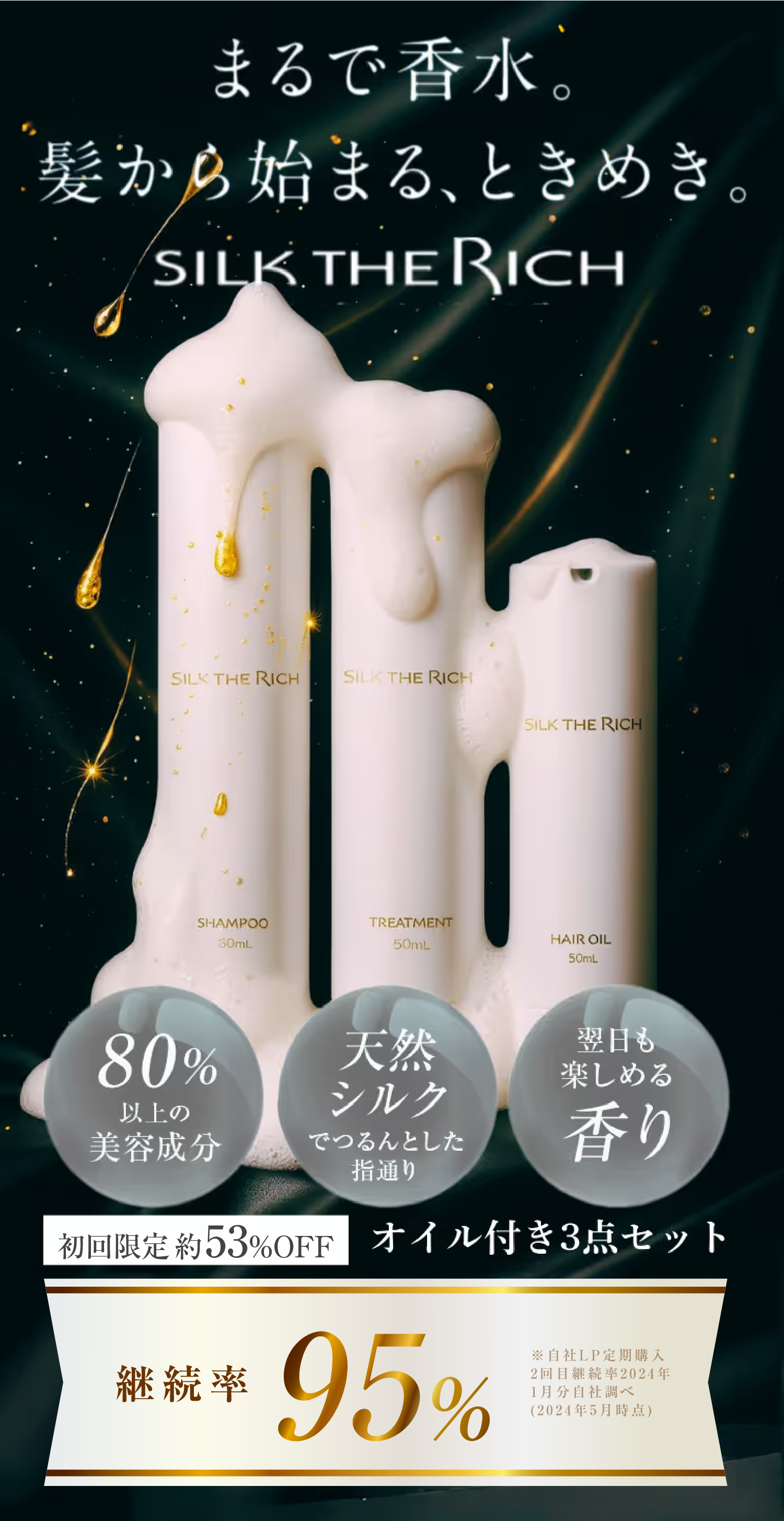 繭由来成分が浸透し補修、ツヤと指通りを向上します。